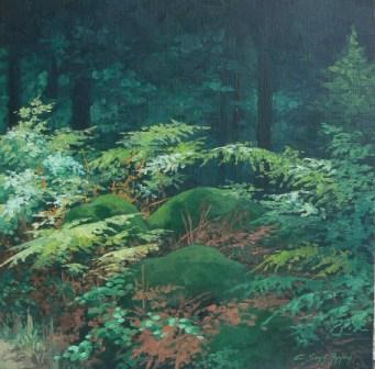 Fougères en sous bois,huile sur toile,30x60